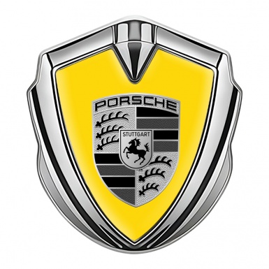 Porsche Tuning Emblem Self Adhesive Silver Yellow Base Big Greyscale Logo
