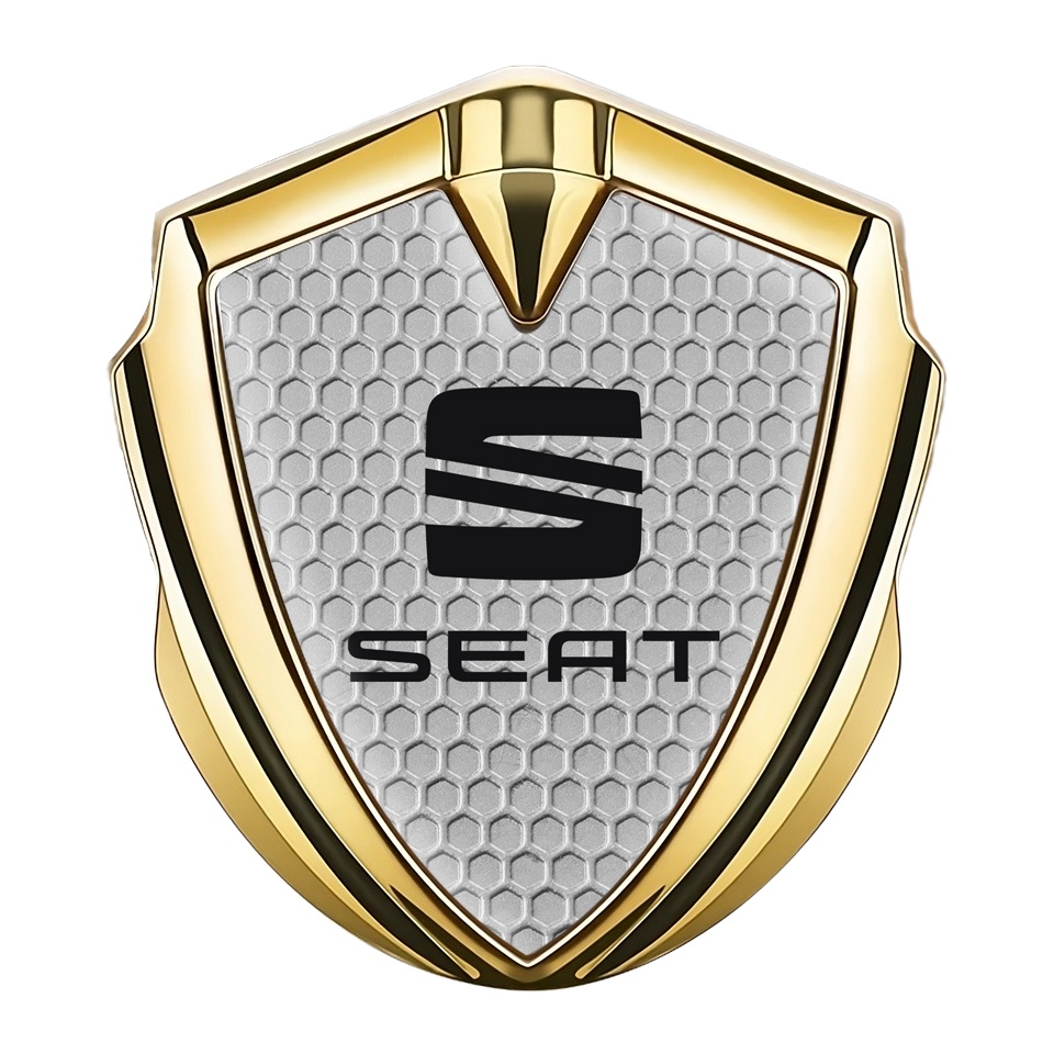 Seat 3D Car Metal Domed Emblem Gold Grey Honeycomb Clean Logo