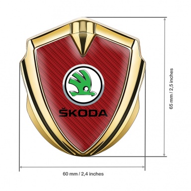 Skoda Badge Self Adhesive Gold Red Carbon Green Metallic Logo