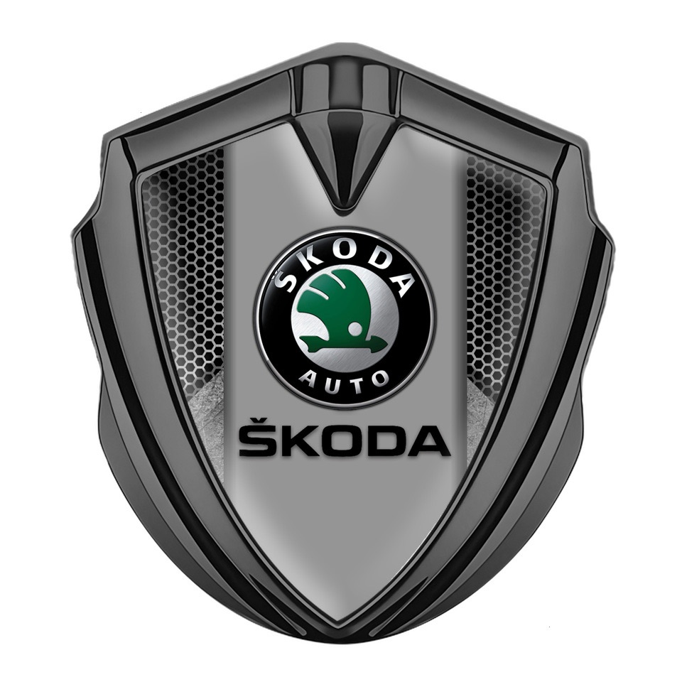 Skoda Badge Self Adhesive Graphite Grey Honeycomb Black Logo