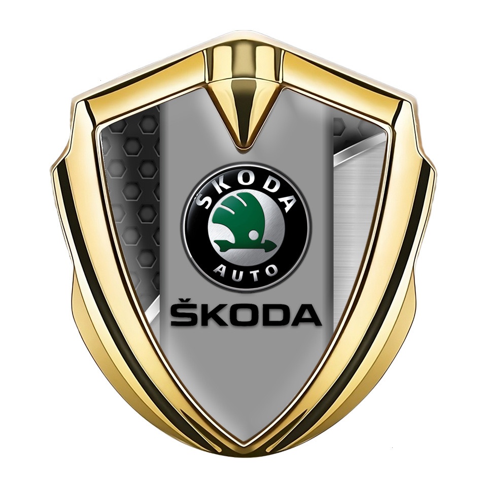 Skoda Bodyside Domed Emblem Gold Dark Hex Black Classic Logo