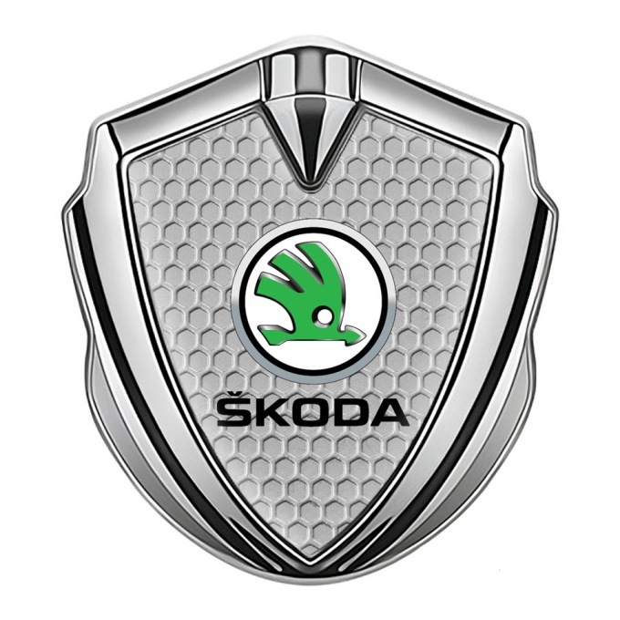 Skoda Emblem Badge Self Adhesive Silver Honeycomb Green Metallic Logo