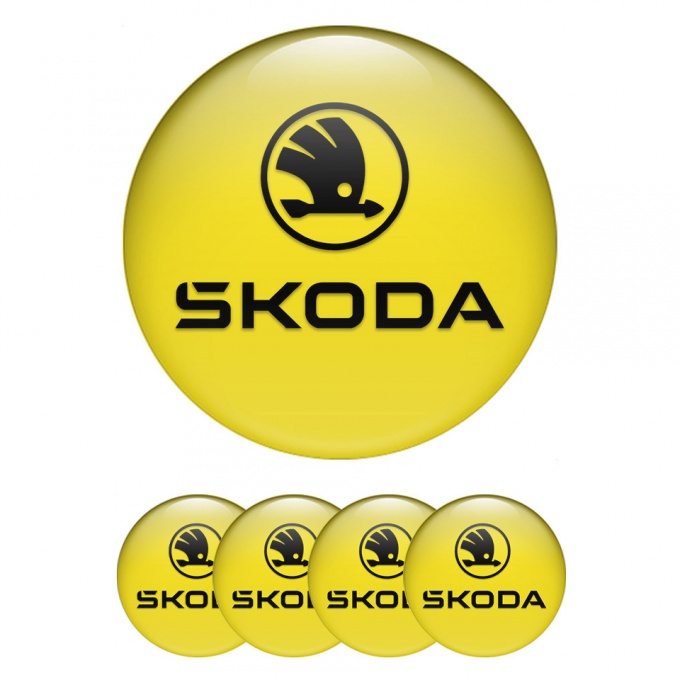 Skoda Emblem for Center Wheel Caps Yellow Base Black Logo Variant