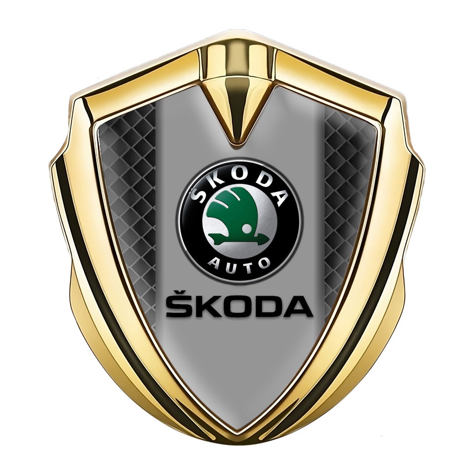 Skoda Emblem Trunk Badge Gold Dark Squares Black Classic Logo