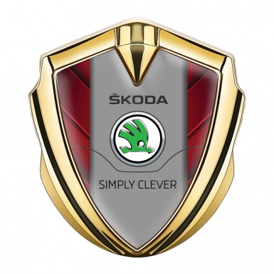 Skoda Emblem Trunk Badge Gold Red Hex Pattern Classic Green Logo
