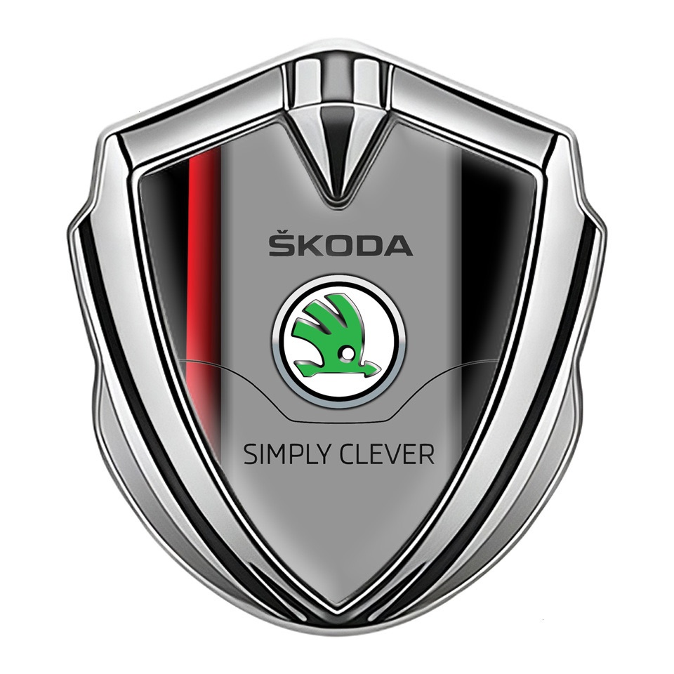 Skoda Metal Domed Emblem Silver Crimson Stripe Classic Green Logo
