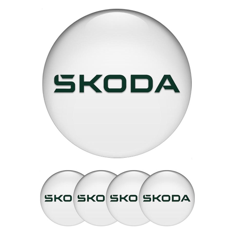 Skoda Wheel Stickers for Center Caps White Base Olive Green Logo Edition