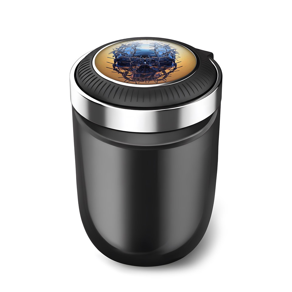 Sleek and stylish car ashtray with LED light. He is designed to fit in the cup holder in your vehicle. Premium Quality and Durability: Crafted from high-quality materials, our ashtray is designed to withstand intensive use. Its robust construction guarantees a long lifespan and reliability.