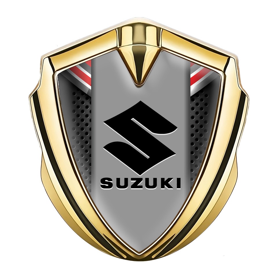 Suzuki Emblem Car Badge Gold Perforated Metal Black Logo Edition