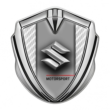 Suzuki Emblem Car Badge Silver White Carbon Frame Chrome Logo