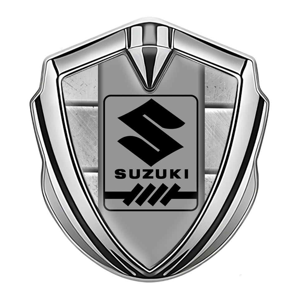 Suzuki Emblem Silicon Badge Silver Stone Pattern Black Gearshift Logo
