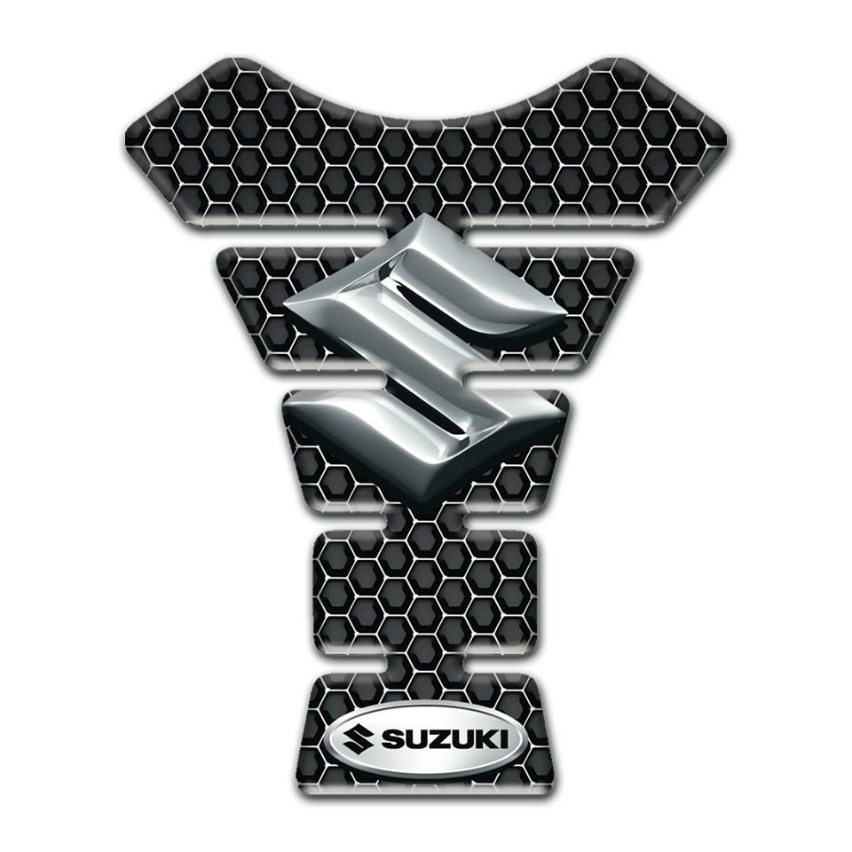 Suzuki Tank Guard Pads Perforated Steel Base with Silver Logo