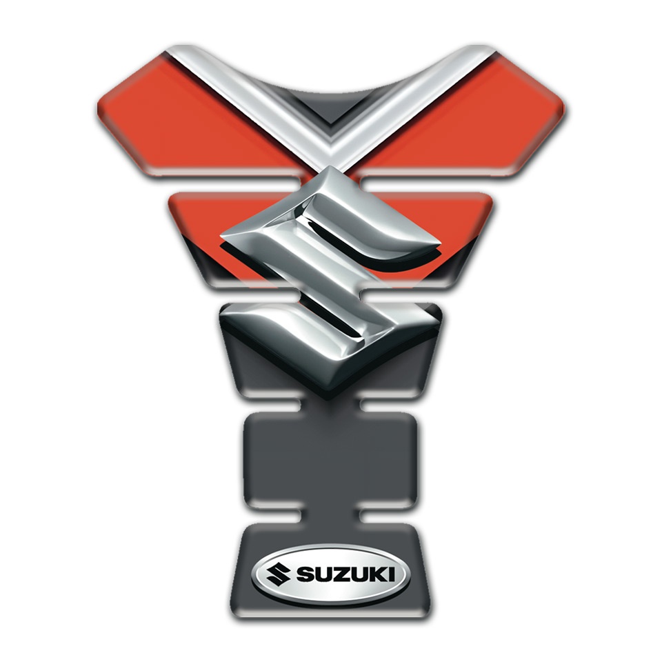 Suzuki Tank Pad Protector Orange Motive Background with 3D Silver Logo