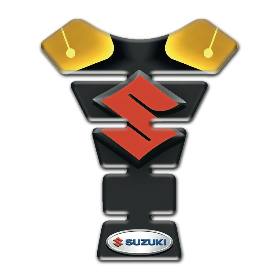 Suzuki Tank Protector Black Yellow Print Base Orange Logo Design