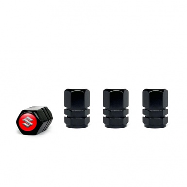 Suzuki Valve Steam Caps Black 4 pcs Red