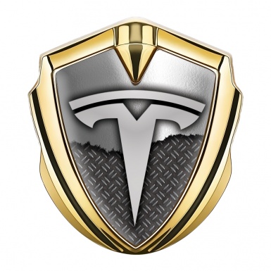 Tesla 3D Car Metal Emblem Gold Half Metal Plate Edition