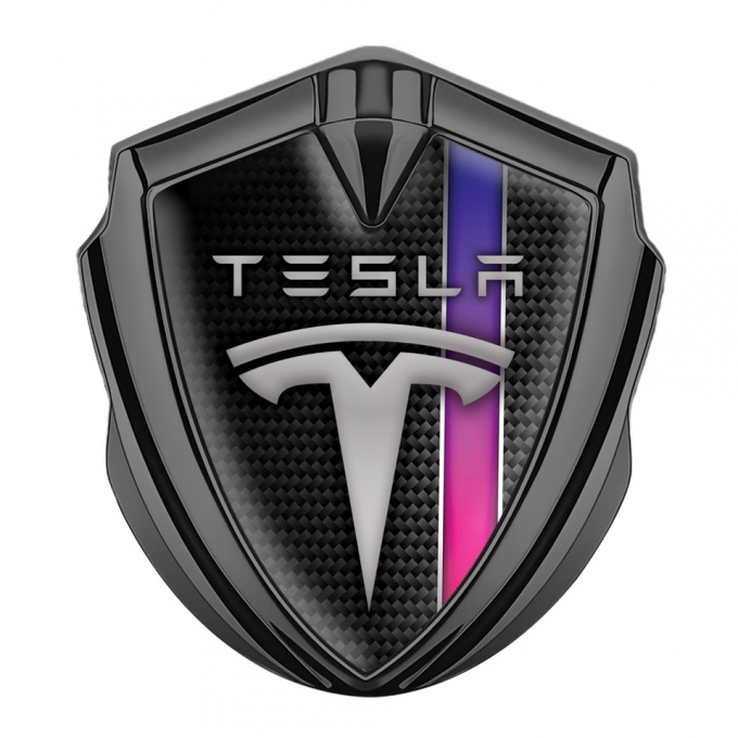 Tesla 3D Car Metal Emblem Graphite Black Carbon Color Stripe Design