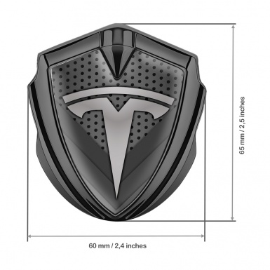 Tesla 3D Car Metal Emblem Graphite Grey Dot Grid Logo Edition