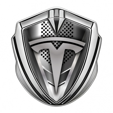 Tesla 3D Car Metal Emblem Silver Grey Mesh Sharp V Template