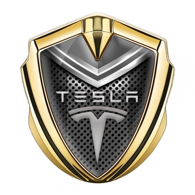 Tesla Bodyside Badge Self Adhesive Gold Metal Grate Grey Crest Design
