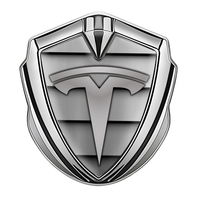 Tesla Bodyside Badge Self Adhesive Silver Shutter Plates Grey Logo