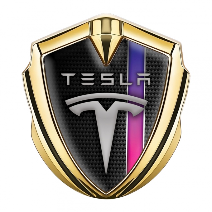 Tesla Bodyside Domed Emblem Gold Black Carbon Dark Lavender Stripe