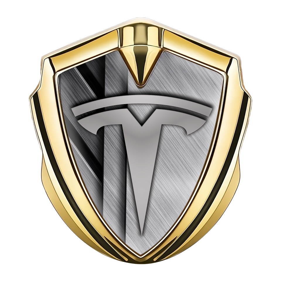 Tesla Bodyside Emblem Gold Brushed Metal Effect Grey Logo