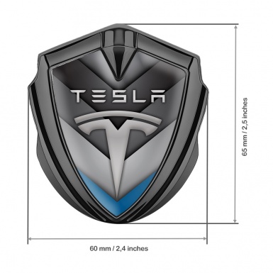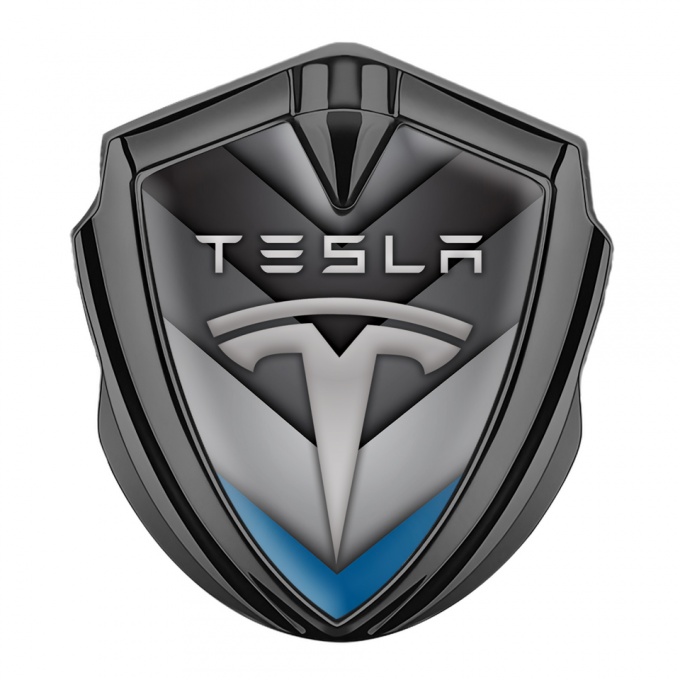 Tesla Fender Emblem Badge Graphite Blue V Shape Effect Grey Logo