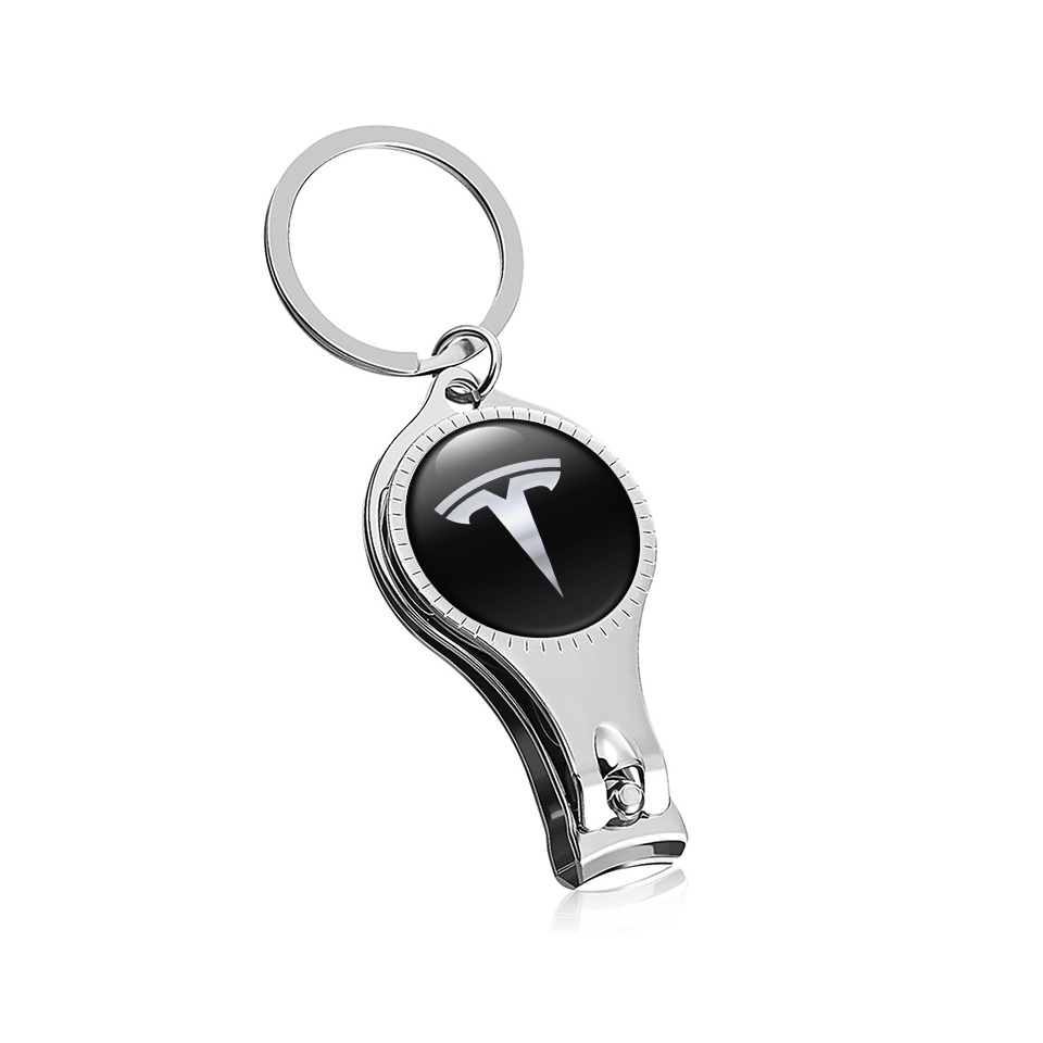 Tesla Keychain Fingernail Clipper Classic Black Metallic Logo Design
