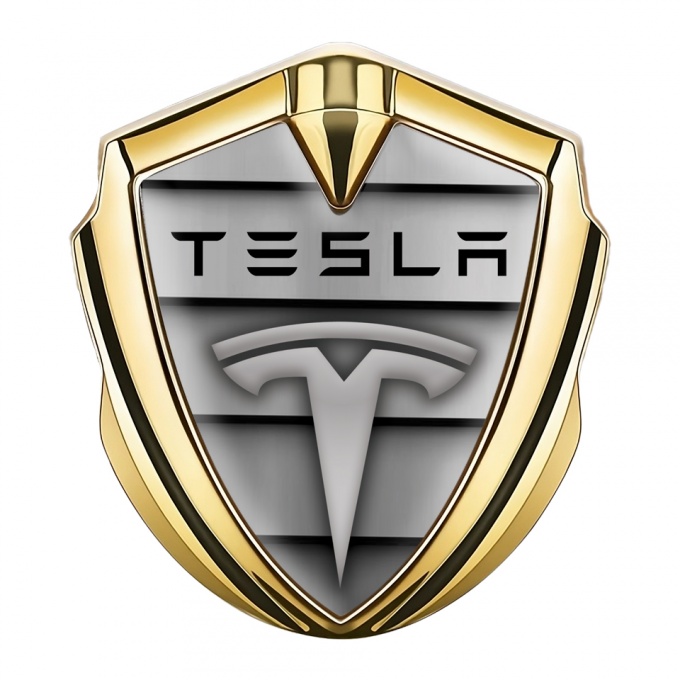 Tesla Trunk Emblem Badge Gold Grey Shutter Effect Edition