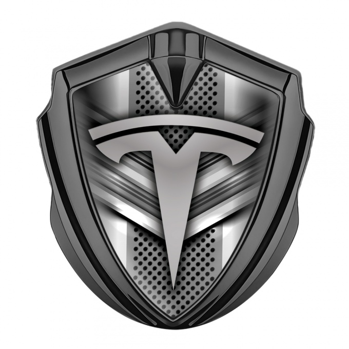 Tesla Trunk Emblem Badge Graphite Grey Metal Mesh Gradient Logo Design