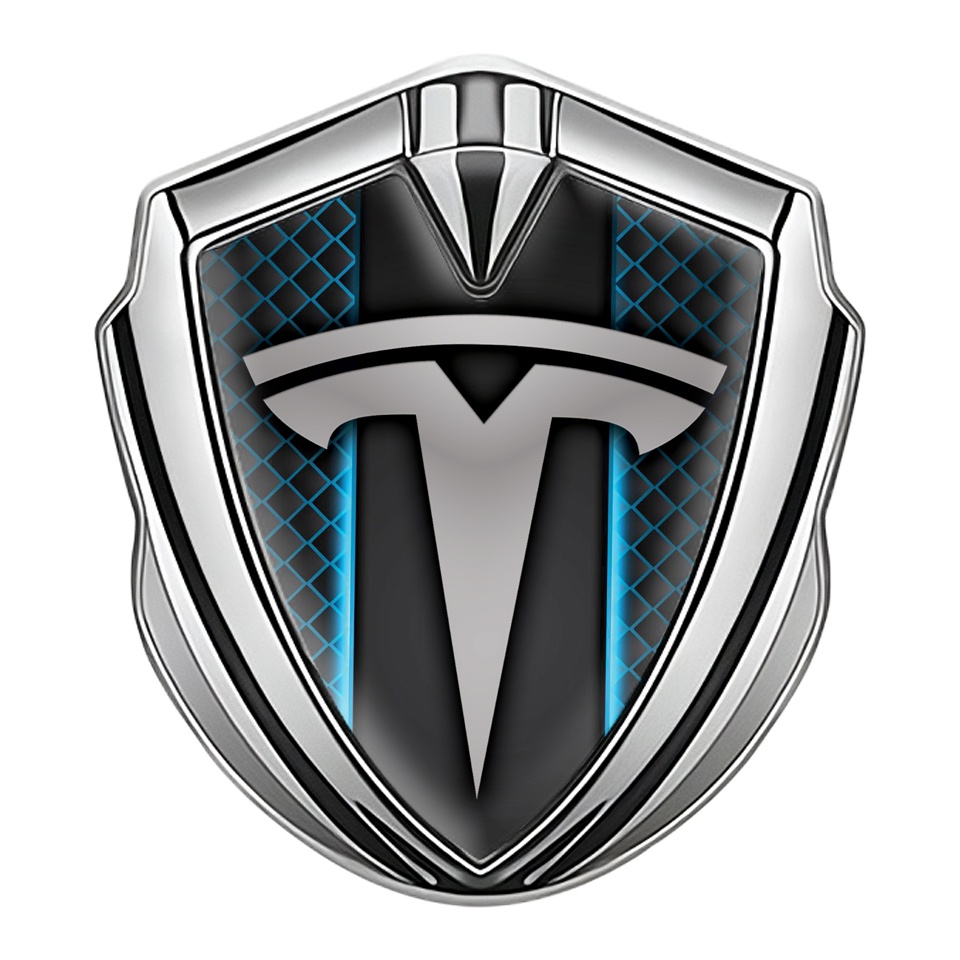 Tesla Trunk Emblem Badge Silver Blue Grid Straight Line Design