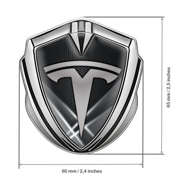 Tesla Trunk Emblem Badge Silver Grey Hex Lights Edition