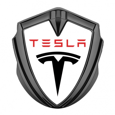 Tesla Tuning Emblem Self Adhesive Graphite White Base Classic Black Logo