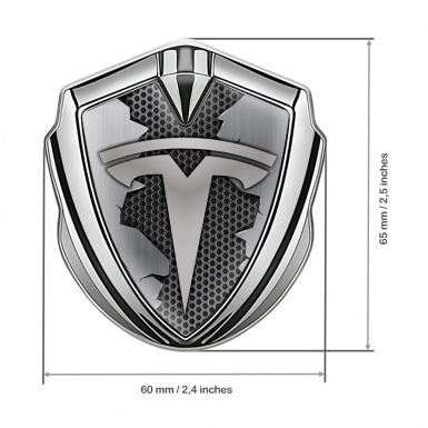 Tesla Tuning Emblem Self Adhesive Silver Cracked Metal Design