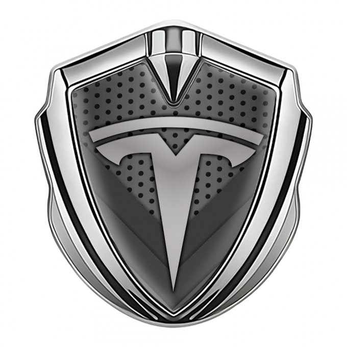 Tesla Tuning Emblem Self Adhesive Silver Dark Grate V Shapes Grey Logo