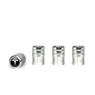 Tesla Valve Caps Aluminium 4 pcs White Logo