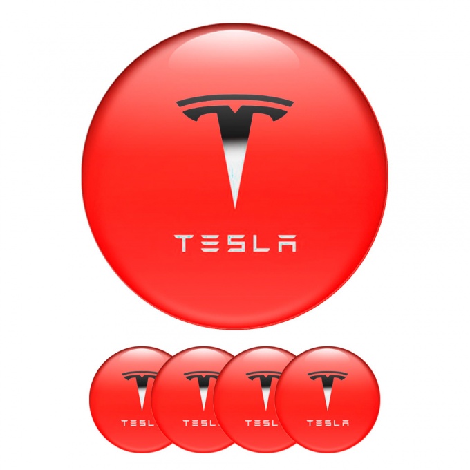 Tesla Wheel Emblems for Center Cap Red Gradient Logo