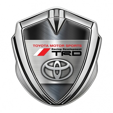 Toyota TRD Fender Emblem Badge Silver Brushed Steel Oval Logo