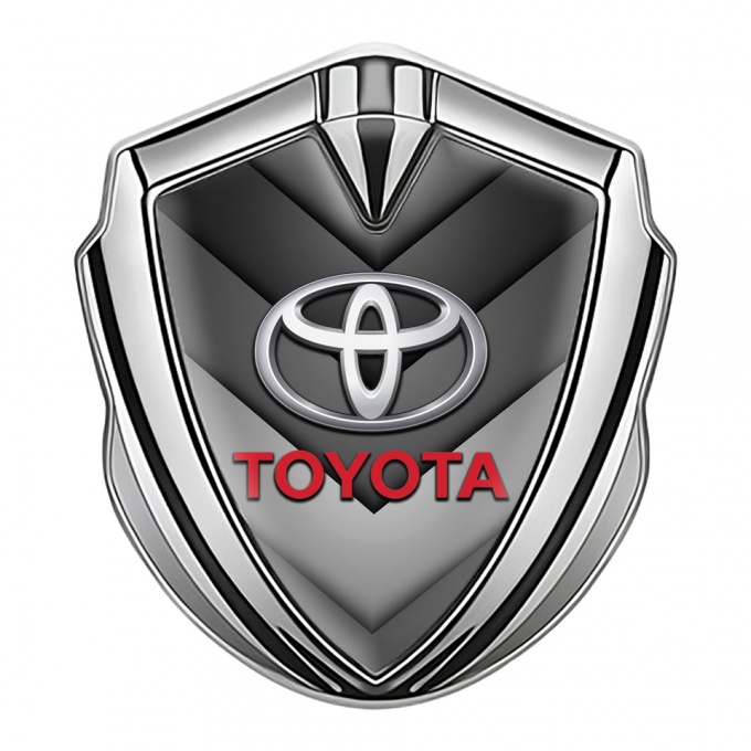 Toyota Trunk Emblem Badge Silver Grey Arrows Red Characters Motif