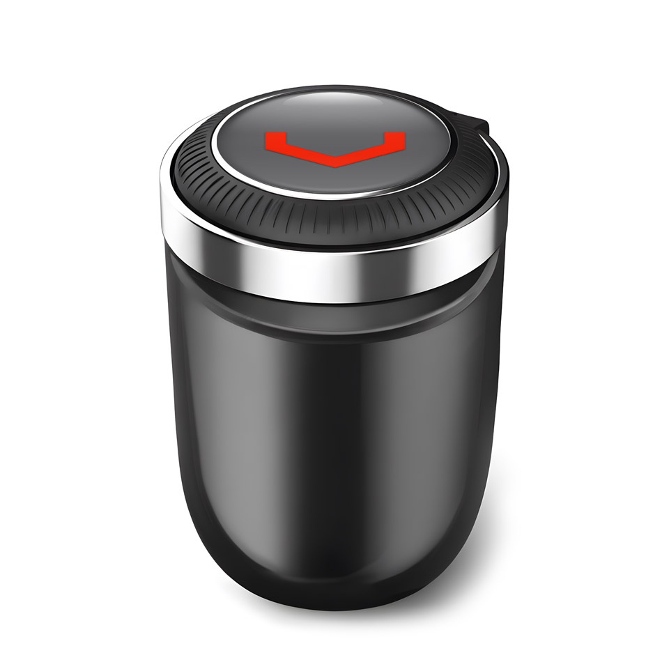 Sleek and stylish car ashtray with LED light. He is designed to fit in the cup holder in your vehicle. Premium Quality and Durability: Crafted from high-quality materials, our ashtray is designed to withstand intensive use. Its robust construction guarantees a long lifespan and reliability.