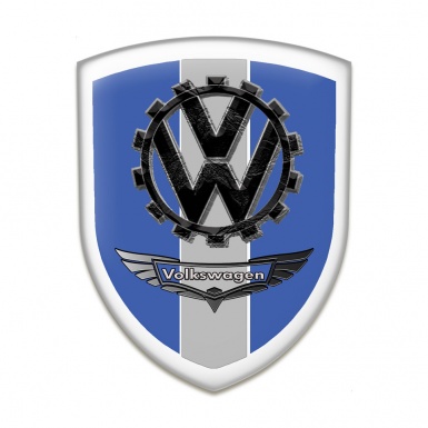 /VW 3D Gel Emblem Blue Print with Grey Contour and Bird Logo Effect