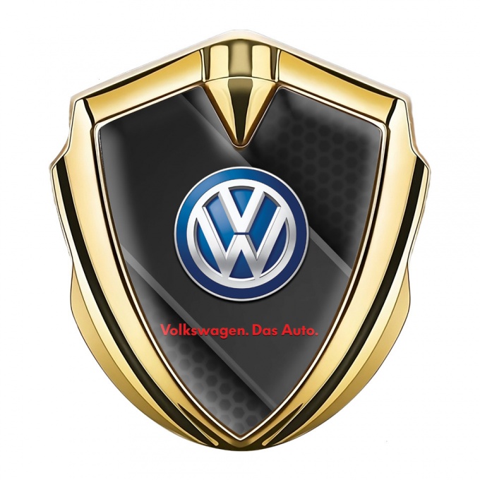 VW Domed Emblem Gold Diagonal Black Plate Honeycomb Edition