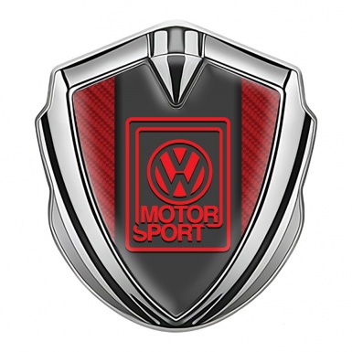 VW Domed Emblem Silver Red Carbon Outline Motorsport Logo