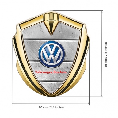 VW Emblem Metal Badge Gold Stone Blocks Classic Color Logo