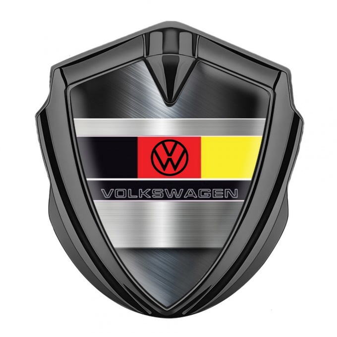 VW Emblem Ornament Graphite Blushed Aluminum German Flag Design