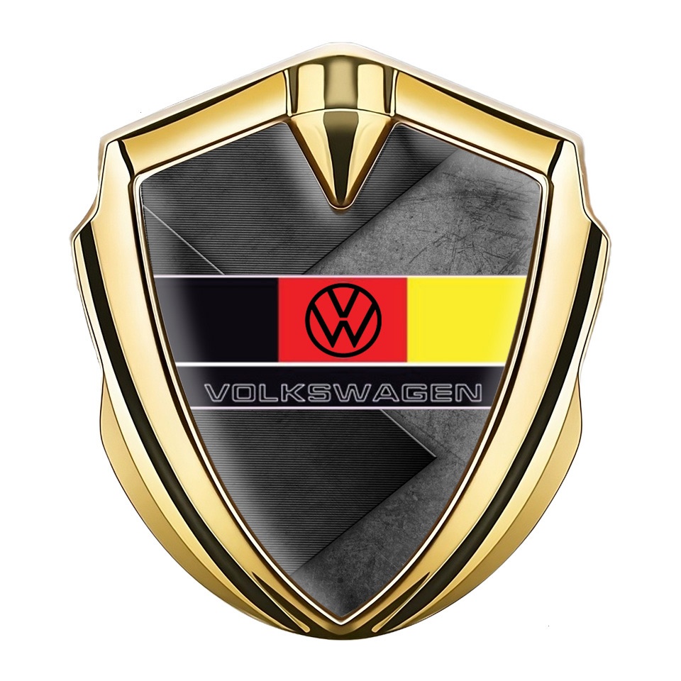 VW Emblem Trunk Badge Gold Brazed Pattern German Flag Edition