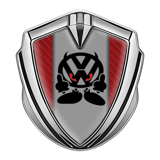 VW Emblem Trunk Badge Silver Red Carbon Evil Logo Design