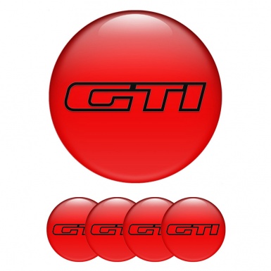 /VW GTI Stickers for Center Wheel Caps Red Fill Black Outline Logo