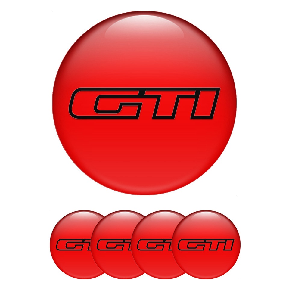 VW GTI Stickers for Center Wheel Caps Red Fill Black Outline Logo